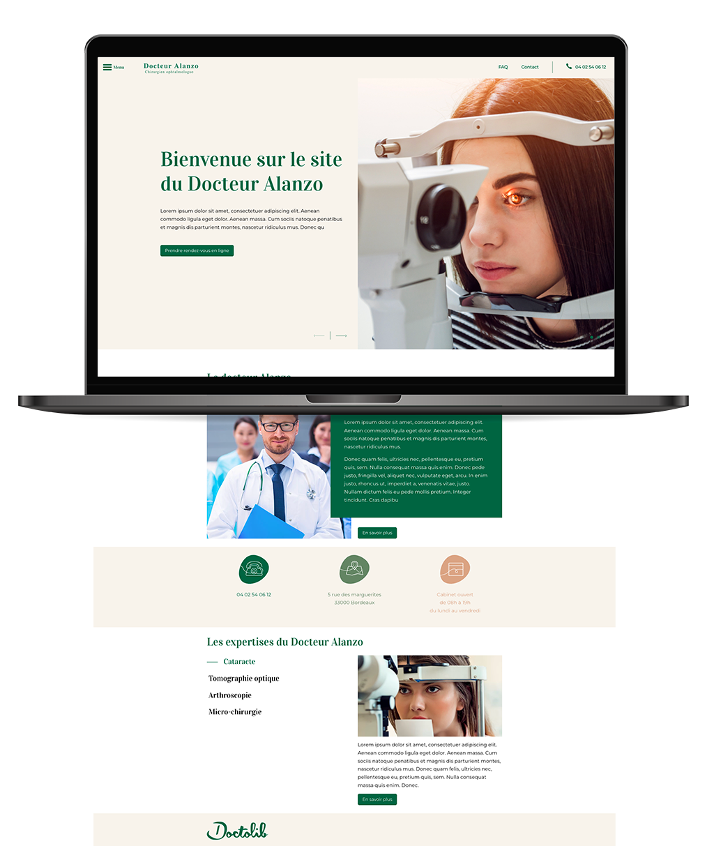Une structure de site adaptée aux attentes des patients et dans les dernières tendances design, personnalisée selon vos besoins.