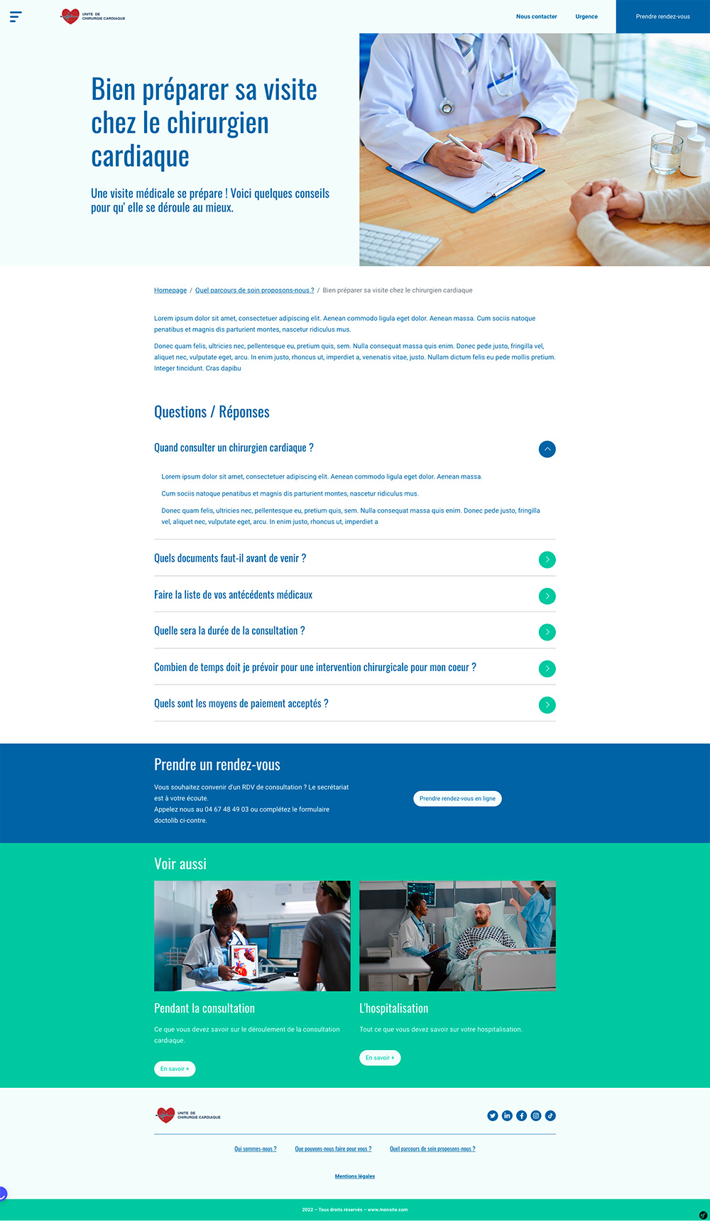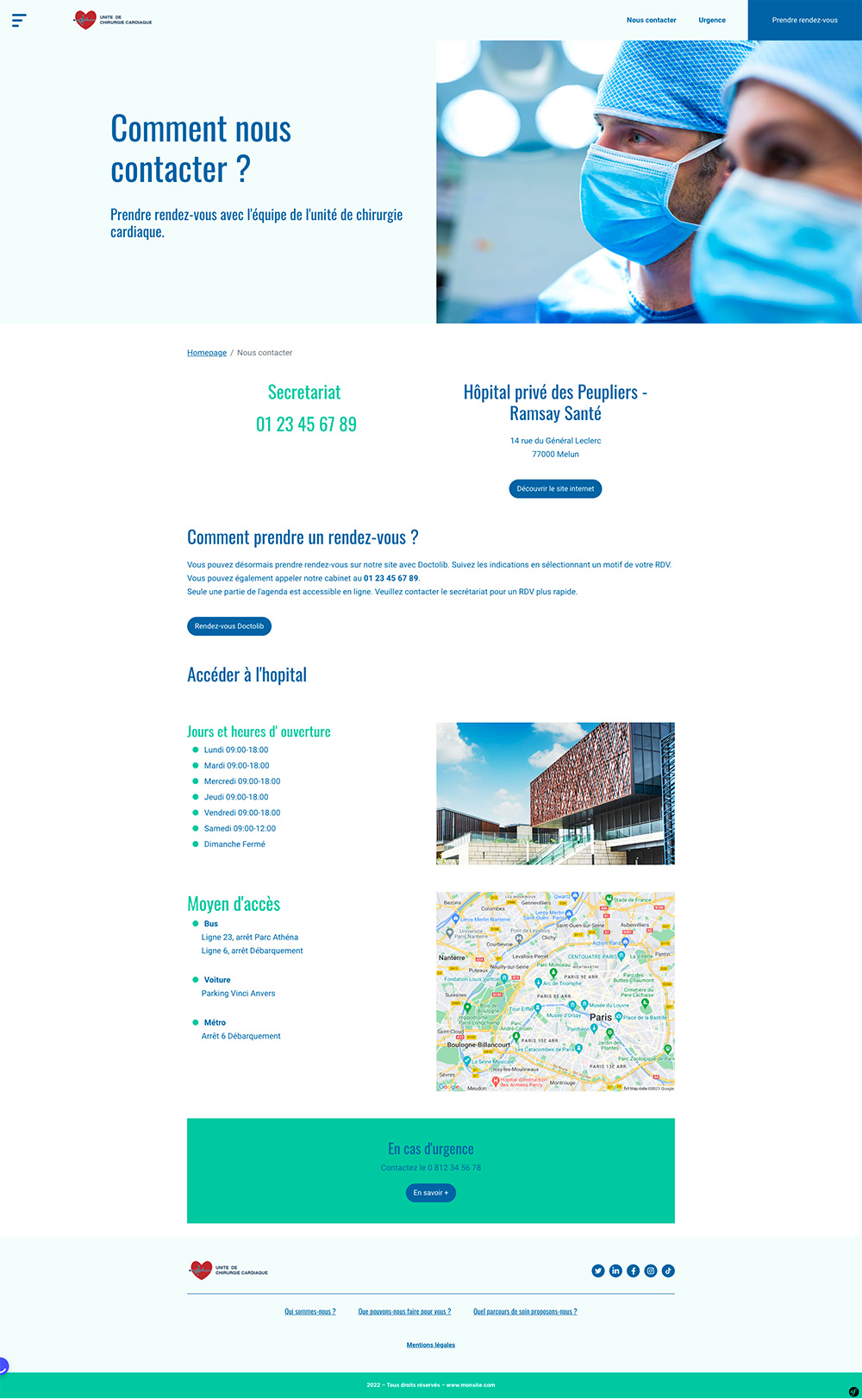 Site fictif pour une équipe de chirurgiens cardiaques